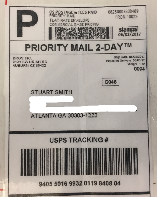 About 4 PM, I went back to my desk and found a U.S. Postal Service Priority 2-Day envelope!