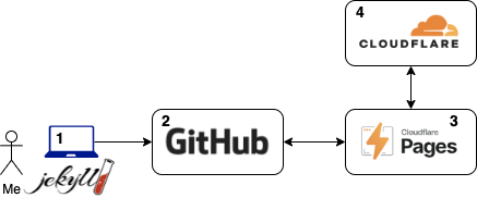 Lastly, the deployment is a bit more straightforward, and works well with the Jekyll static content management system I’m using. The overall design looks like this: